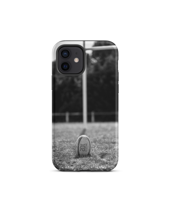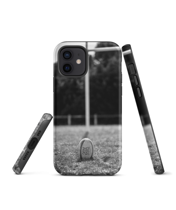 L'iPhone MA shell Les Francophones cattura l'intensità del rugby con una foto in bianco e nero di una palla rugby in posizione prima di uno scatto tra i post, simboleggiando il momento decisivo di un calcio di penalità. Un mix perfetto di stile e funzionalità per gli appassionati di rugby.