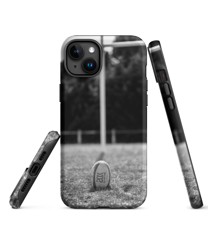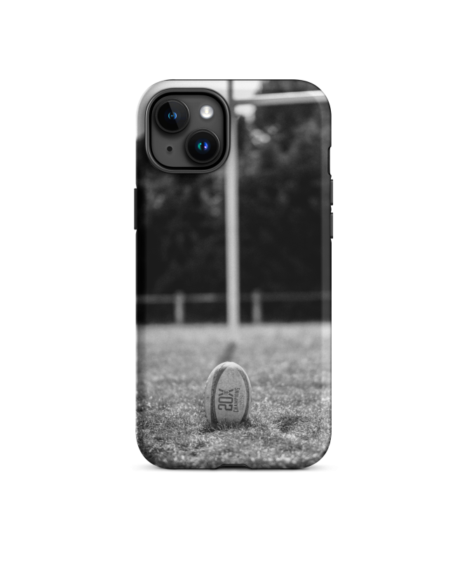 L'iPhone MA shell Les Francophones cattura l'intensità del rugby con una foto in bianco e nero di una palla rugby in posizione prima di uno scatto tra i post, simboleggiando il momento decisivo di un calcio di penalità. Un mix perfetto di stile e funzionalità per gli appassionati di rugby.