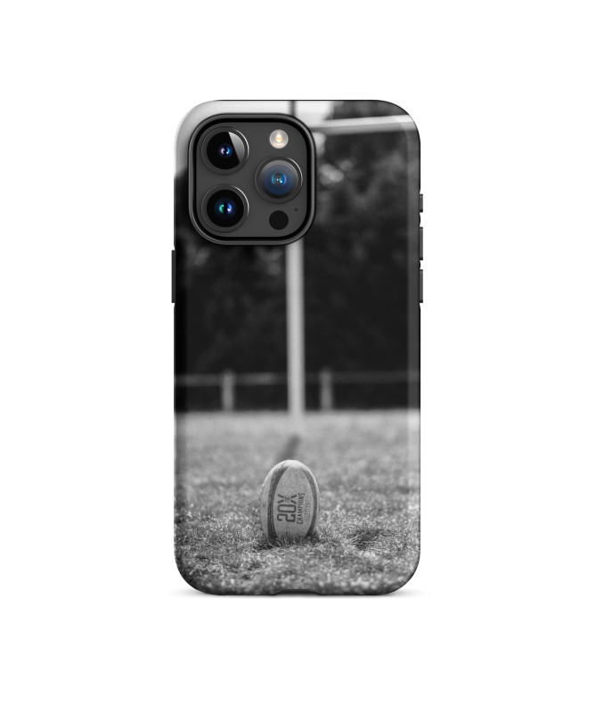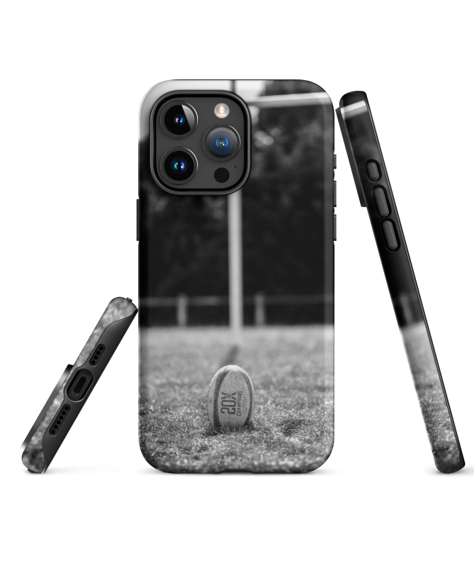 L'iPhone MA shell Les Francophones cattura l'intensità del rugby con una foto in bianco e nero di una palla rugby in posizione prima di uno scatto tra i post, simboleggiando il momento decisivo di un calcio di penalità. Un mix perfetto di stile e funzionalità per gli appassionati di rugby.