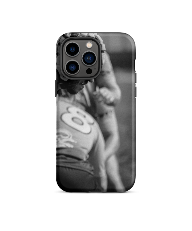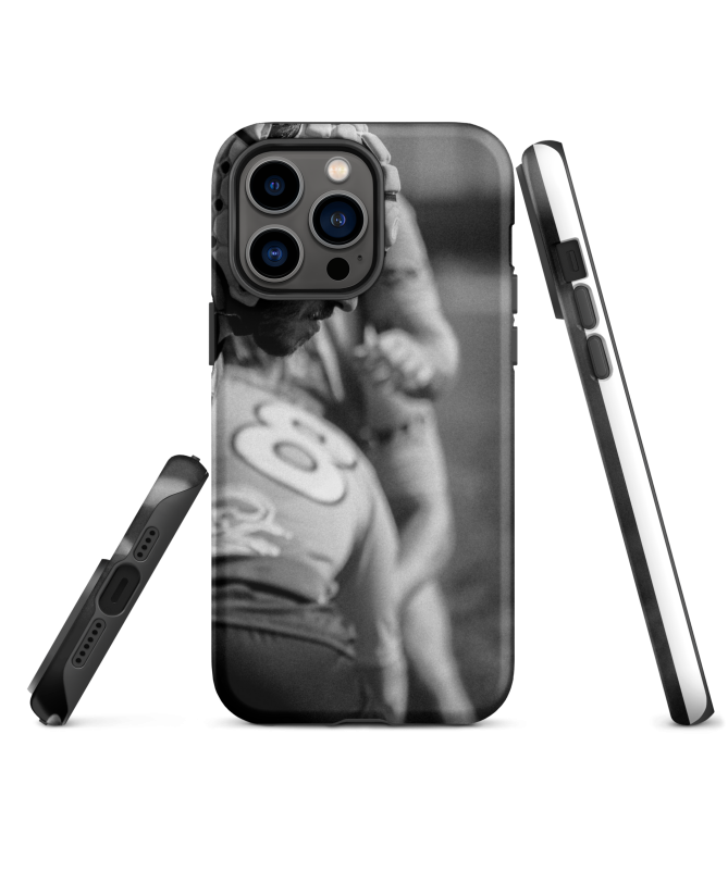 Mostra la tua passione per il rugby con lo scafo di iPhone BRAS Les Francophones, catturando la forza e l'intensità del gioco attraverso una sorprendente immagine nera e bianca di braccia muscolari in una mischia.