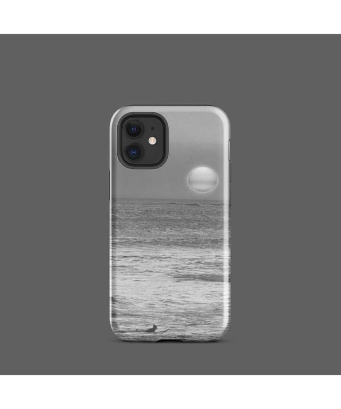 IPhone Fredb Paradis Shell: scopri il paradiso balinese attraverso questa superba foto in bianco e nero, con un tramonto sull'oceano e un surfista di silhouette.