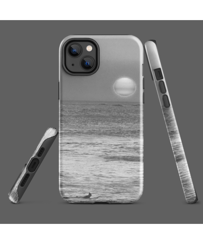 IPhone Fredb Paradis Shell: scopri il paradiso balinese attraverso questa superba foto in bianco e nero, con un tramonto sull'oceano e un surfista di silhouette.