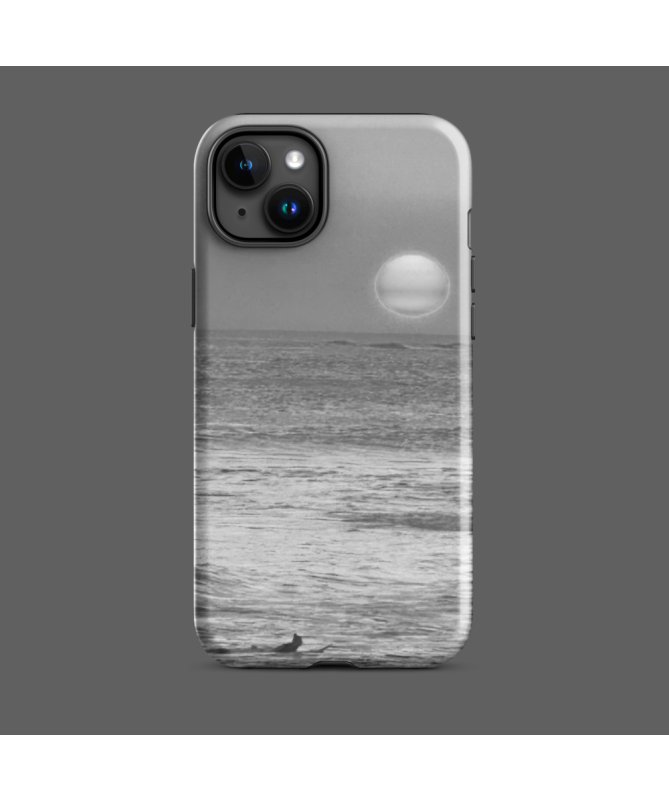 IPhone Fredb Paradis Shell: scopri il paradiso balinese attraverso questa superba foto in bianco e nero, con un tramonto sull'oceano e un surfista di silhouette.
