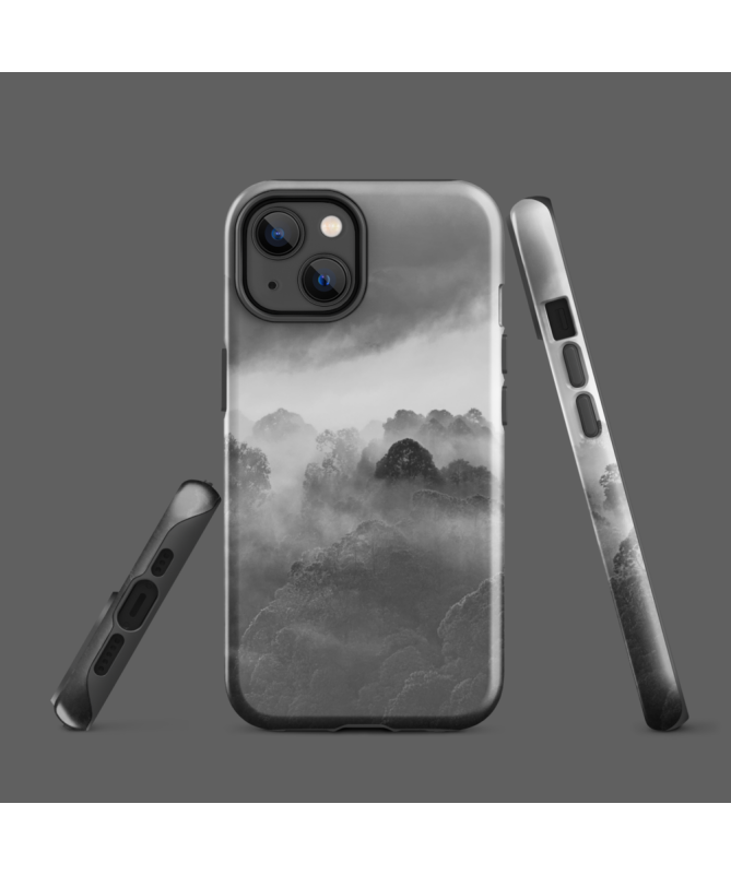 Esplora la misteriosa bellezza della foresta balinese con la custodia per iPhone FREDB POINTE, catturando in bianco e nero l'enigmatica sagoma di un albero che emerge dalla...