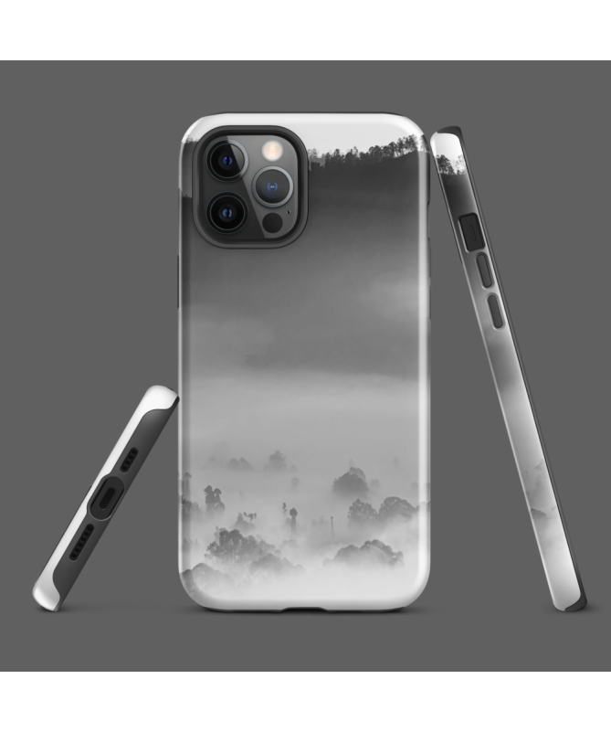 Esplora i cieli balinesi con la custodia per iPhone FREDB NUAGE, una splendida foto in bianco e nero delle montagne di Bali che emergono maestose sopra le nuvole.