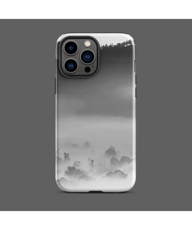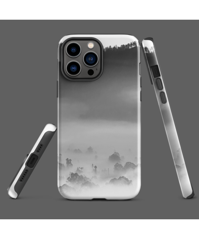 Esplora i cieli balinesi con la custodia per iPhone FREDB NUAGE, una splendida foto in bianco e nero delle montagne di Bali che emergono maestose sopra le nuvole.