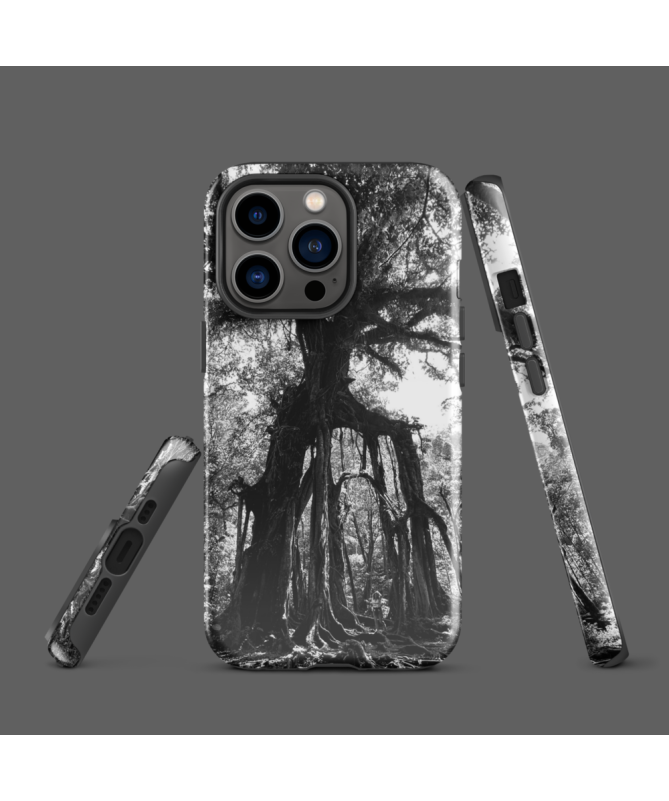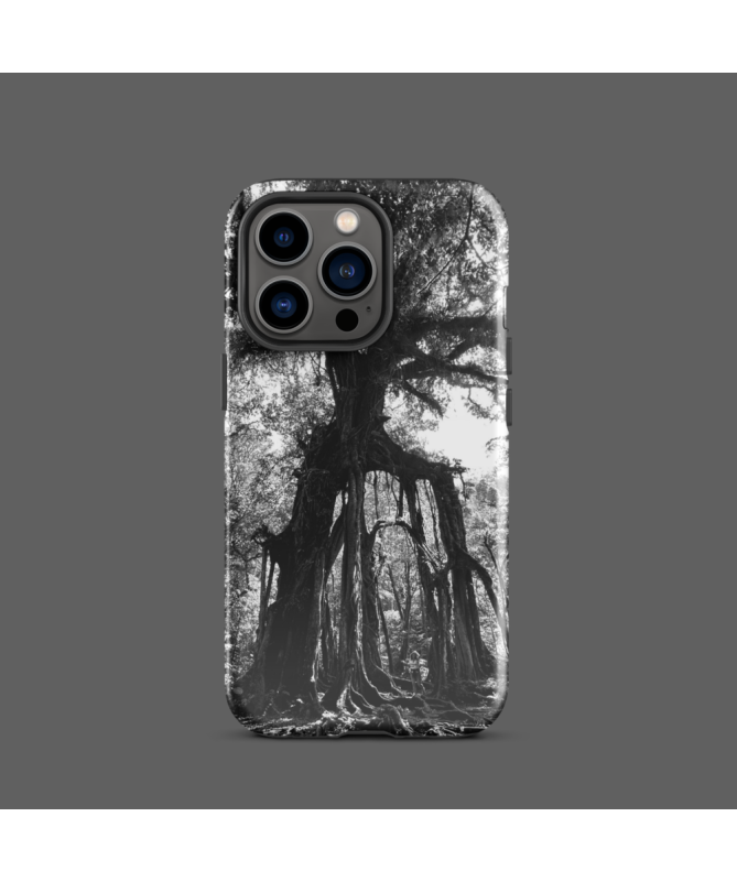 Custodia per iPhone FREDB TREE: un inno alla maestosità della natura balinese, catturata in bianco e nero per un'esperienza visiva unica.