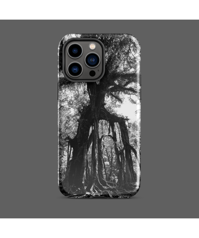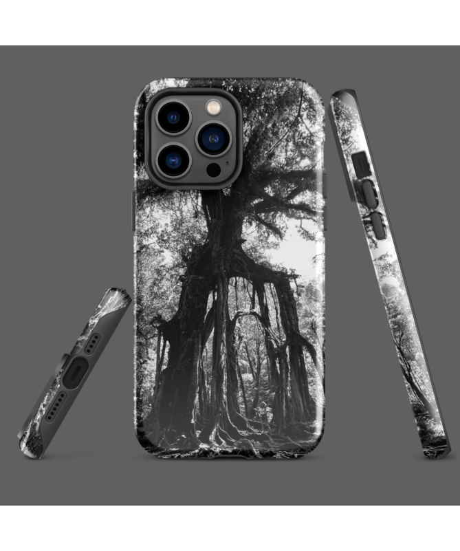 Custodia per iPhone FREDB TREE: un inno alla maestosità della natura balinese, catturata in bianco e nero per un'esperienza visiva unica.