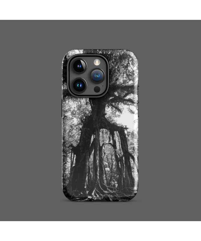 Custodia per iPhone FREDB TREE: un inno alla maestosità della natura balinese, catturata in bianco e nero per un'esperienza visiva unica.