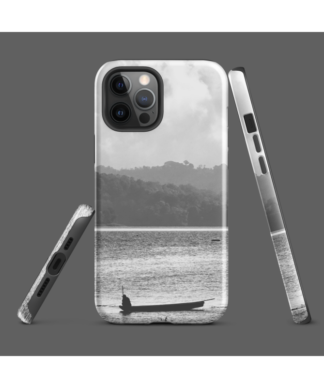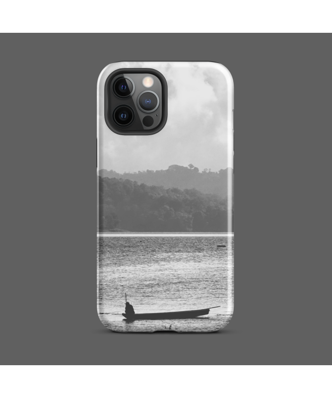 Custodia per iPhone FREDB FISHERMAN: vivi lo spirito di Bali con questa accattivante custodia in bianco e nero, raffigurante un pescatore solitario sulla sua barca, che naviga...