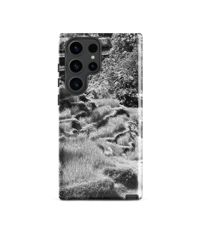 Immergiti nell'immensità delle risaie di Tegalalang a Bali con la custodia Samsung FREDB RIZ, una suggestiva visione in bianco e nero per valorizzare il tuo telefono