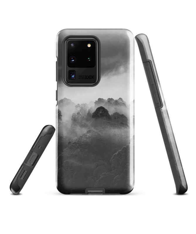 Esplora la misteriosa bellezza della foresta balinese con la custodia Samsung FREDB POINTE, catturando in bianco e nero l'enigmatica sagoma di un albero che emerge dalla...