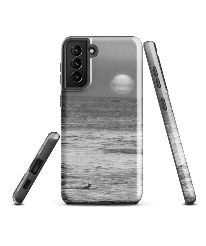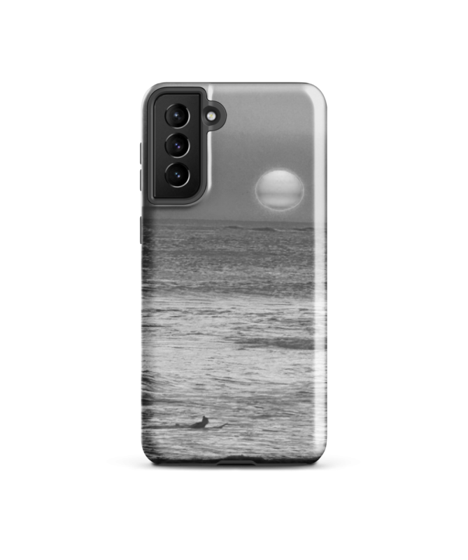 Custodia Samsung FREDB PARADIS: Scopri il paradiso balinese attraverso questa splendida foto in bianco e nero, con un tramonto sull'oceano e la silhouette di un surfista.