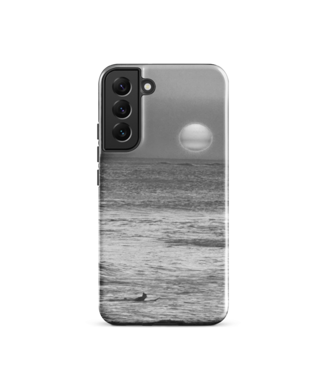 Custodia Samsung FREDB PARADIS: Scopri il paradiso balinese attraverso questa splendida foto in bianco e nero, con un tramonto sull'oceano e la silhouette di un surfista.