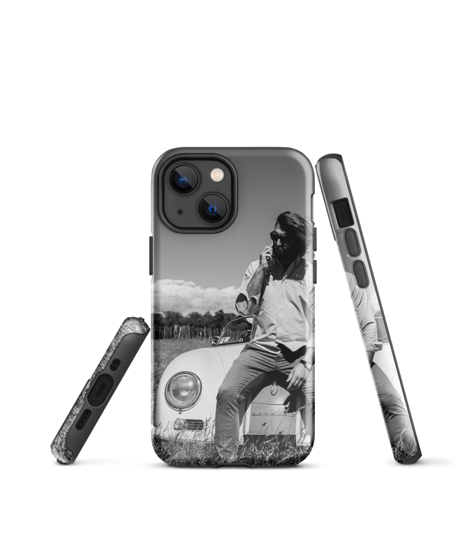 Festeggia il fascino dell'auto con il nostro scafo "iPhone AutoAlex Les Francophones". Presentato il nostro modello Alex seduto sul cofano di una Porsche 356, questo guscio incarna l'eleganza senza tempo.