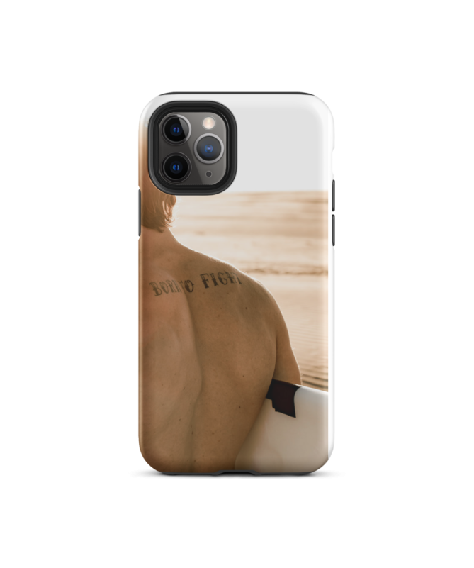 Vivere l'oceano sentire con lo scafo "iPhone Surf Les Francophones", con il nostro modello Sacha di schiena, pronto a domare le onde sul surf. Questo elegante scafo protegge il vostro iPhone mentre esprime la vostra passione per il surf.