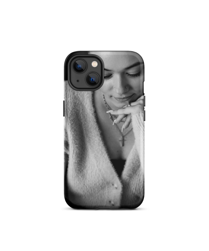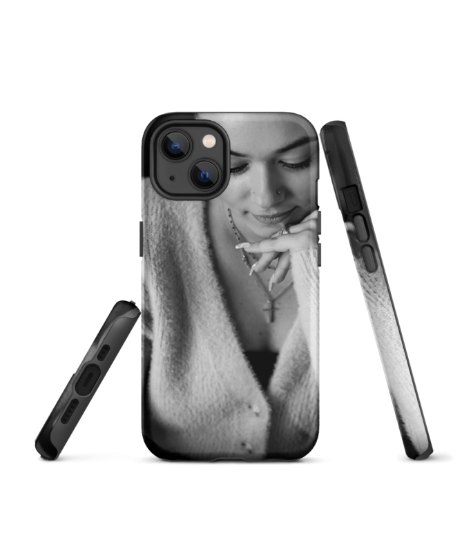 Immersione in eleganza senza tempo con lo scafo "iPhone Thais Les Francophones", con il nostro modello tailandese in un'immagine accattivante in bianco e nero. Proteggi il tuo iPhone con un tocco di stile e autenticità.